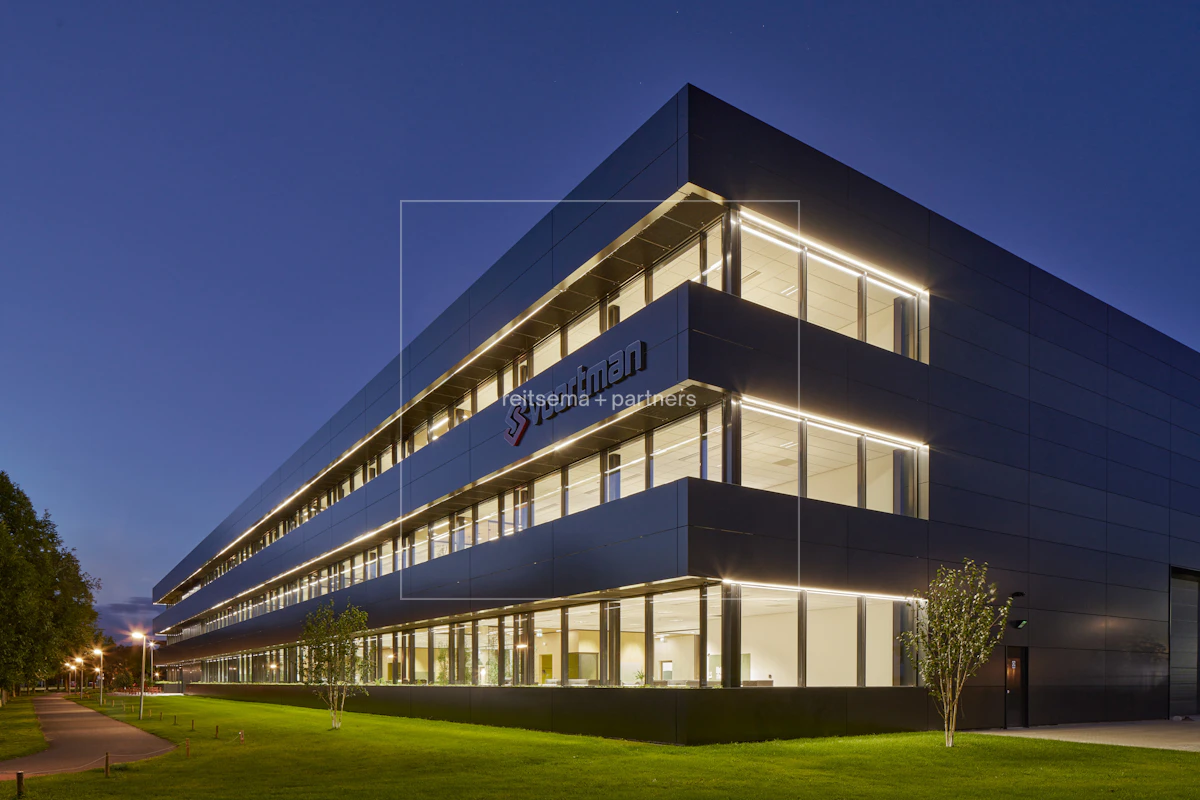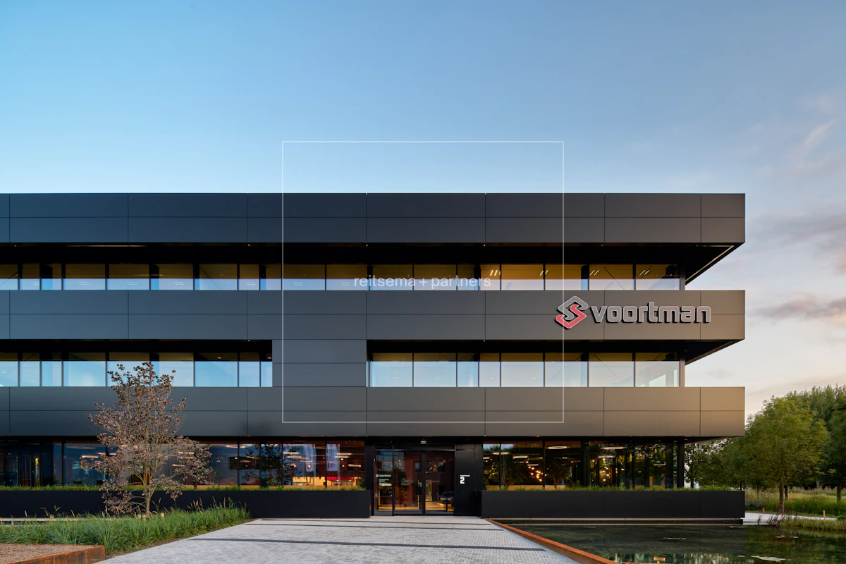 Om dit te verwezenlijken werkte reitsema + partners nauw samen met Voortman om een flexibel grid te ontwikkelen. Dit grid diende als basis voor het uiteindelijke ontwerp, wat resulteerde in een gebouw dat zich eenvoudig aan veranderende behoeften kon aanpassen. De plattegronden werden daardoor overzichtelijk met een optimale afmeting voor de projectgroepen. Het ontwerp van de gevel kreeg een regelmatig ritme, wat bijdroeg aan de rustige en tijdloze uitstraling van het ontwerp. De terugliggende gevel en overstekken zorgen voor aangenaam natuurlijk licht en ook zonwering op de werkvloeren. Dankzij de zorgvuldige uitwerking van details en het vakmanschap van de uitvoerende partijen sluiten de verschillende materialen en plaatmaten perfect op elkaar aan.